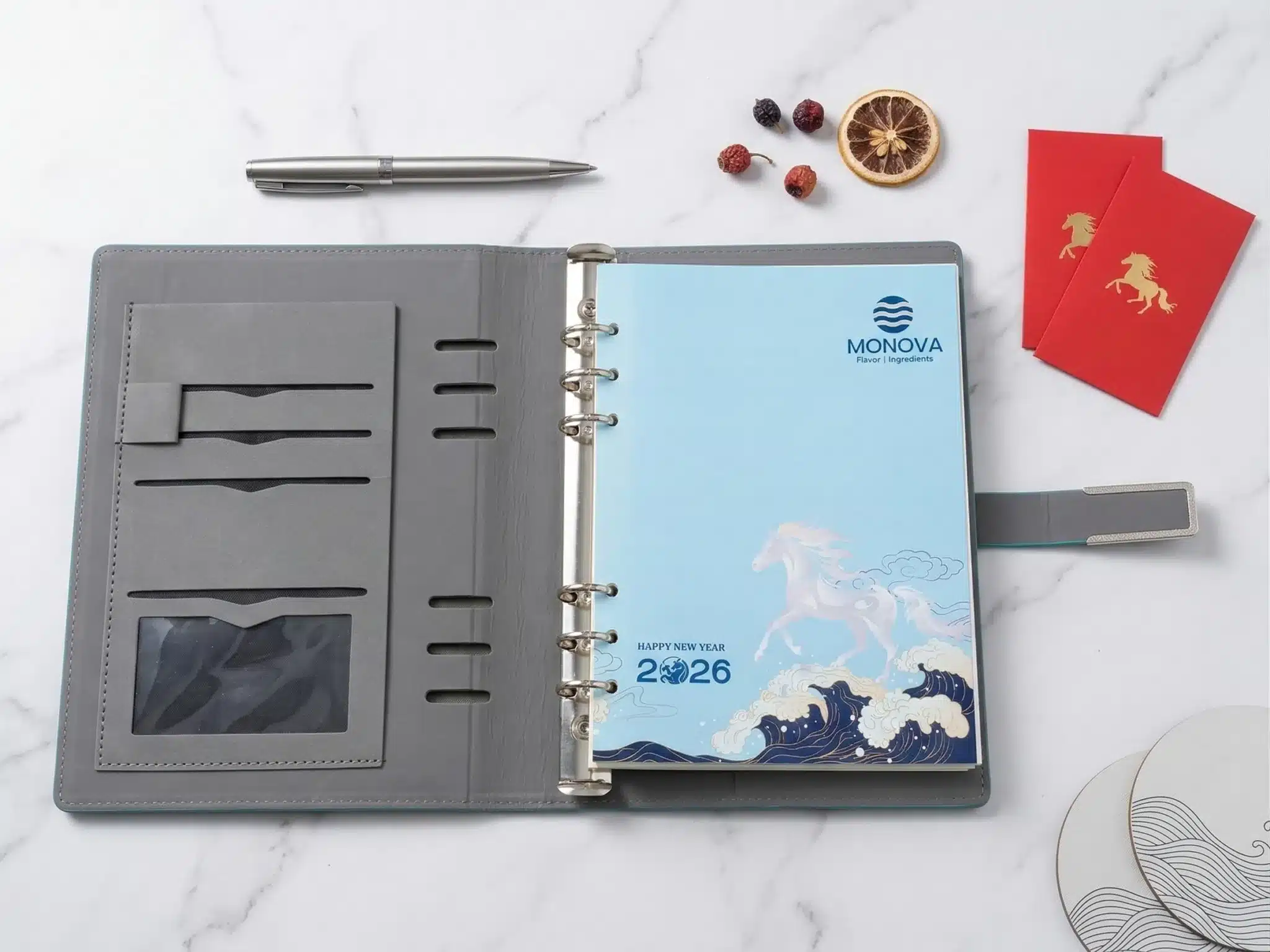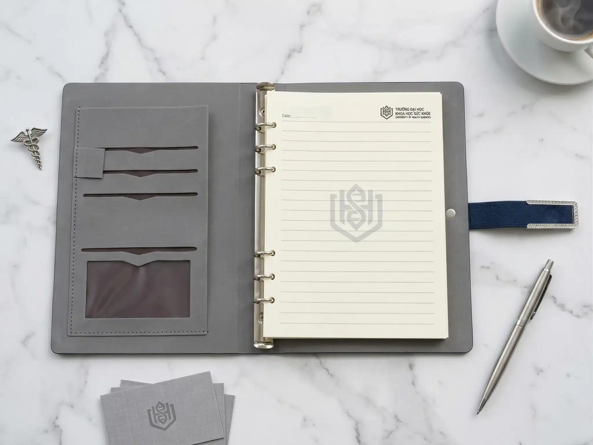 Chất liệu bìa da PU cao cấp mang lại vẻ đẹp sang trọng, chuyên nghiệp và bền bỉ. Giải pháp quà tặng đối tác đẳng cấp với khả năng dập chìm logo và tùy biến thiết kế linh hoạt theo nhận diện thương hiệu.